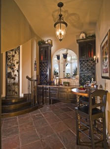 First, enjoy a relaxing cocktail hour in your wine bar or off-the-living room wet bar. It’s a great place to start the evening with hours d’oeuvres, a glass of your favorite wine or cocktail and maybe a little music. You could even choose a selection of wines from your very own wine cellar.