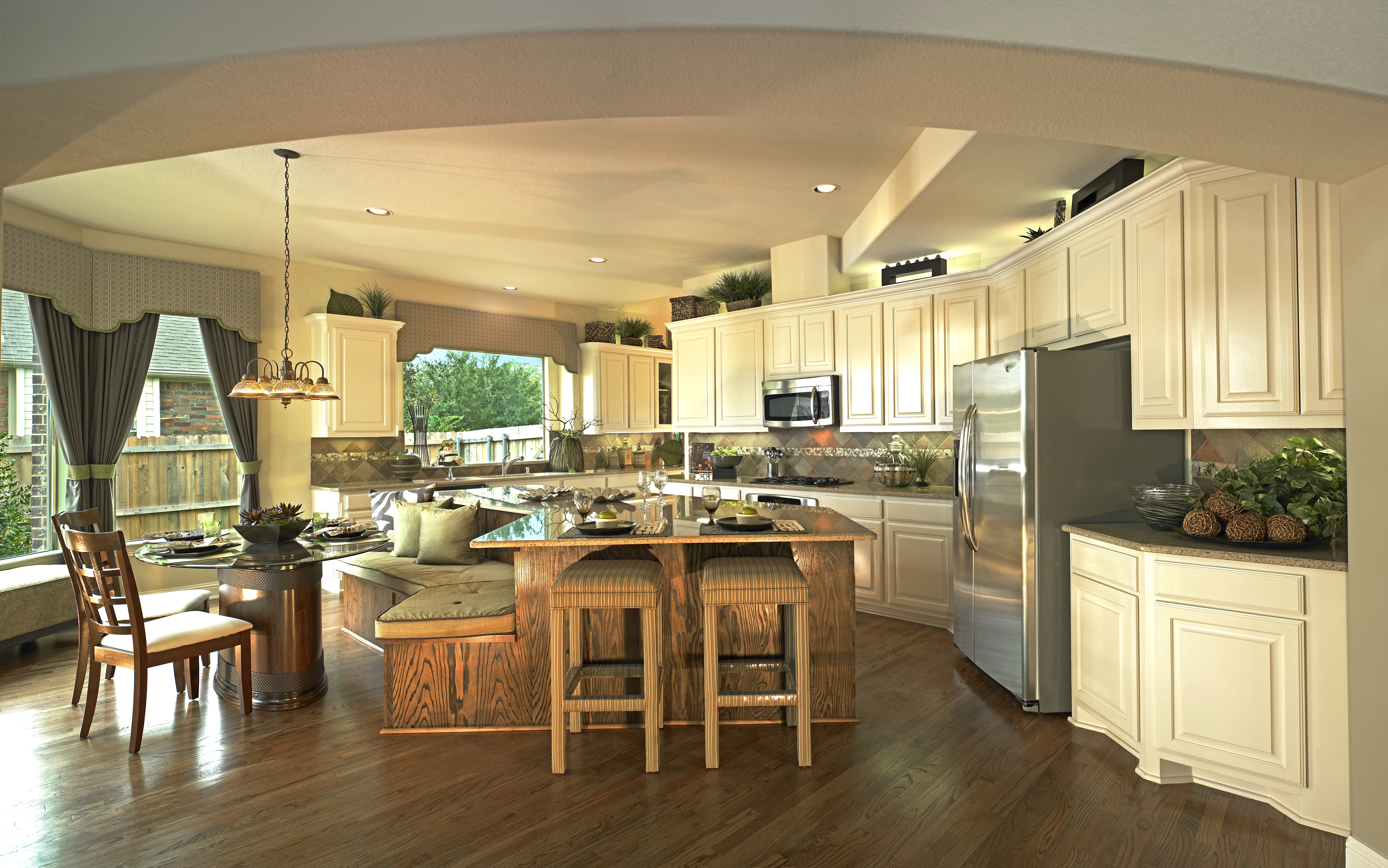 Food brings friends and families closer together and our Grand Kitchens come stocked with plenty of counter and cabinet space for storage and built-in stainless steel appliances. Cooking up a storm is easy on a cook top and tile and hardwood floors make cleaning up spills simple. Bring your guests closer to the action as they sit at the breakfast bar while you put the finishing touches on the meal.