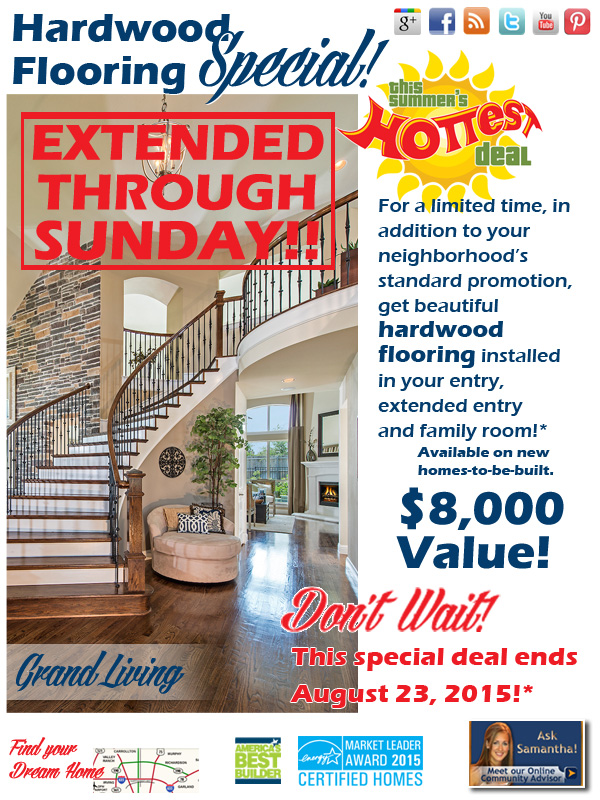 That’s up to $22,650 in savings on your new, home to be built when you use both promotions and sign between August 31, 2015 and September 7, 2015!