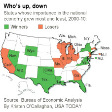 USA TODAY examined each state’s gross domestic product to determine how the country’s economic output has shifted within its borders. The data reflected both population growth and income increases — in short, the economic weight of each state.